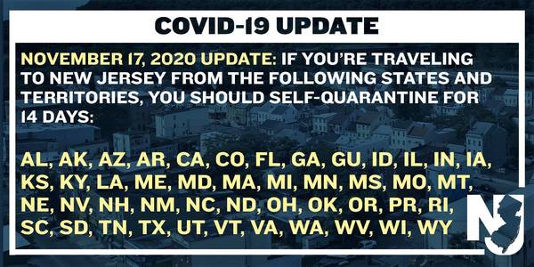 Two more states were added to New Jerseys travel advisory for the. General information on. New Jerseys coronavirus travel advisory re-added New Mexico Tuesday bringing the list back to 35 states and territories where travelers are asked to quarantine.