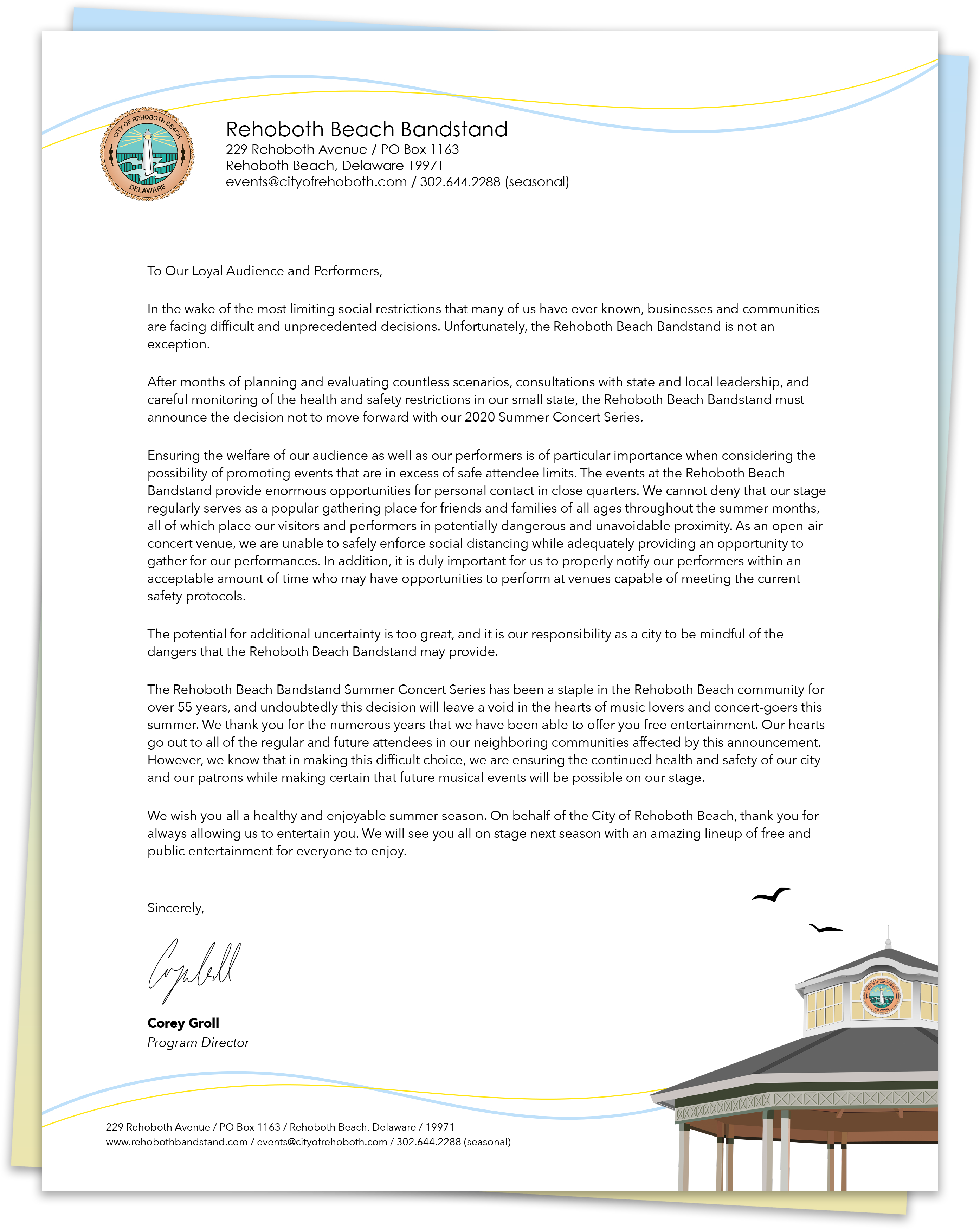 To Our Loyal Audience And Performers Rehoboth Beach Bandstand
